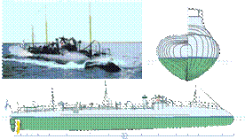 Рис.23. Миноносец типа «Измаил». Корабль пользовался штормовым ходом в режиме прорезания волн. Известно, что в 1887 году миноносцу устраивались ходовые испытания на 6-бальном волнении, где он, идя навстречу волне и зарываясь по ходовую рубку, показывал 15,5 узла и 17 узлов – при ходе по волне [Мельников, 1981]. По теоретическому чертежу хорошо видно, что нос не обладает свойством всхожести на волну, в то же время развал шпангоутов в районе кормового подзора обеспечивает прижатие корпуса к поверхности волны на ходу корабля, что необходимо для стабилизации работы гребного винта и руля в условиях крупного волнения.