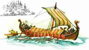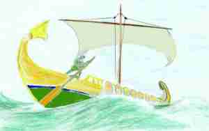 Рис.8. Лодья – небольшое парусно-гребное судно древних славян. Маневренность лодьи не хуже чем у египетских судов, что позволяло ей ходить по мелким российским речушкам и ходом преодолевать днепровские пороги. И все же мореходность этой по сути речной лодьи была достаточной для дерзких походов в Черном море, которые, судя по летописям, не всегда заканчивались «победами» над морскими штормами.