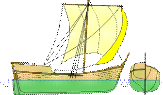 Рис.11. Рыболовное судно русских поморов. Образец корпуса, допускающего активное маневрирование в штормовом море, что необходимо для ухода в укрытие от реальной штормовой опасности. При этом обводы корпуса учитывают особенности штормового плавания по волне под управлением штормовых парусов и навесного руля.
