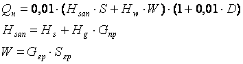 где Qн - нормативный расход топлива, л или куб.м; S - пробег автомобиля или автопоезда, км; Hsan - норма расхода топлива на пробег автопоезда л/100км или куб. м/ 100км; Hs - базовая норма расхода топлива на пробег автомобиля, л/100км или куб. м/ 100км; Hg - норма расхода топлива на дополнительную массу прицепа или полуприцепа, л/100км или куб. м/ 100км; Gпр - собственная масса полуприцепа или прицепа, т; Hw - норма расхода топлива на транспортную работу, л/100км или куб. м/ 100км; W - объем транспортной работы, т·км; Gгр - масса груза, т; Sгр - пробег с грузом, км; D - поправочный коэффициент.