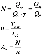 где Qгр - заданный экспортно-импортный объем перевозок, т; Тмес - время в течение которого необходимо перевезти груз, ч; tоб - время оборота автомобиля, ч; N - необходимое общее количество ездок; n - возможное количество ездок одного автомобиля; Ам - требуемое количество автомобилей.