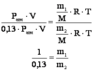 Рассчитаем объем воздуха выкачиваемого из бака необходимого для достижения разряжения 0,13·Ратм. Для этого воспользуемся законом Менделеева – Клапейрона: