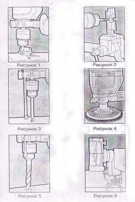 — сверление отверстий в металле, бетоне, кирпиче диаметром до 13 мм (рис. 5) и дереве диаметром до 25 мм (рис. 3);