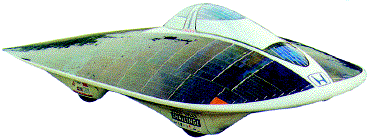 Солнцемобили в большинстве своем машины уникальные. В их конструкции используются оригинальные технические решения и новейшие материалы. Отсюда и очень высокая цена. Например, двухместный солнцемобиль "Мечта" (рис.6.1) обошелся японской автомобильной компании "Хонда" в 2 миллиона долларов. Но деньги были потрачены не напрасно. Трассу трансавстралийского ралли 1996 года протяженностью 3000 км он прошел со средней скоростью почти 90 км/ч, а на прямом скоростном участке достиг 135 км/ч. Рекорд "Мечты" до сих пор никем не побит.