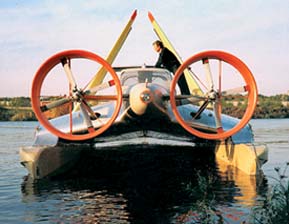 Подготовка экранолета "Иволга" к испытаниям в Нагатинской пойме на Москве-реке.