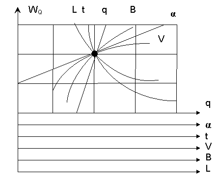 Характеристический график позволяет определить количественную оценку влияния технико-эксплуатационных показателей на производительности подвижного состава.