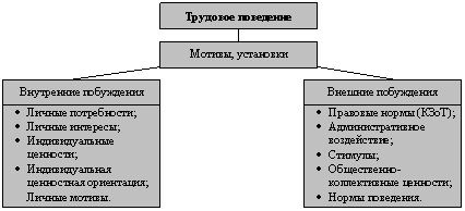Трудовое поведение определяется взаимодействием различных внутренних и внешних побудительных сил. Внутренние побудительные силы: