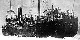 | Пароход "Сахалин", на котором в 1932 г. прибыло руководство Дальстроя во главе с Э.П.Берзиным |