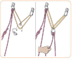 Как организуется база? База организуется с использованием не менее 2 точек страховки. Сначала необходимо стать на самостраховку. После того, как страхующий стал на самостраховку, он блокирует петлей обе точки страховки (анкера).Одну из петель необходимо провернуть и после этого вщелкнуть в них карабин. При таком способе блокирования, если одна из точек вырвется, карабин останется на петле.