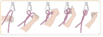 Некоторые полезные узлы Узел «штык» На рисунках показана последовательность действий страхующего при срыве первого в связке. Рассмотрен вариант, когда страховка осуществлялась с использование узла UIAA.