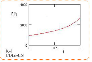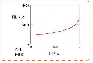 Графики зависимости F(f) и F(L1/Lo) — практически линейные. (Линейность графиков означает, что во сколько раз увеличилось трение или отношение L1/Lo, во столько раз и возрастет величина рывка). Графики приведены ниже. Имеется особенность, когда f и L1/Lo близки к 1.