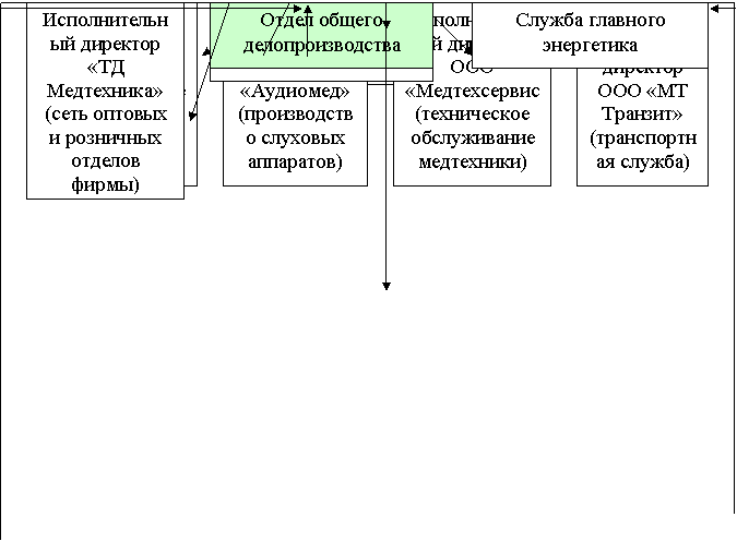 Рисунок 1 - Организационная структура ЗАО НТФ «Медтехника» и место в ней отдела общего делопроизводства.