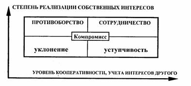 При возникновении конфликтной ситуации или в начале развертывания самого конфликта его участникам необходимо выбрать форму, стиль своего дальнейшего поведения с тем, чтобы это в наименьшей степени отразилось на их интересах. Речь идет о межгрупповых и межличностных конфликтах, в которых участвуют минимум две стороны и в которых каждая из сторон выбирает форму своего поведения для сохранения своих интересов с учетом дальнейшего возможного взаимодействия с оппонентом. При возникновении конфликтной ситуации личность (группа) может выбрать один из нескольких возможных вариантов поведения: