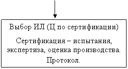 4. Отбор образцов для испытаний. 5. Аттестация производства (если предусмотрено схемой сертификации). 7. Принятие решения о выдаче сертификата и лицензии на право применения знака соответствия. 8. Оформление и регистрация сертификата и выдача сертификата и лицензии на право применения знака соответствия заявителю. |