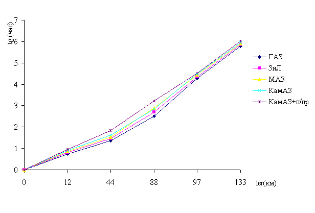Из графика видно, что у автомобиля ГАЗ-3307 самое наименьшее время доставки груза.