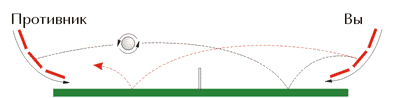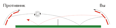 Назначение этого атакующего приема - придать мячу сверхсильное верхнее вращение. Скорость его намного больше, чем при накате, что очень усложняет сопернику ответные действия.