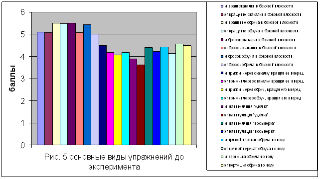 Вращения обруча в боковой плоскости | 5,5 | 5,48 | 6,7 | 6,9 |