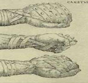 Третий период в развитии боевой перчатки – это период тяжелых перчаток римского происхождения (с конца IV до II вв. до н. э.) со свинцом и железом, называемых цестами.[5]