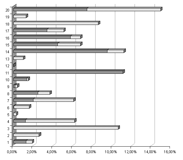 § национальная оборона - 10,6% (за счет Федерального бюджета) - содержание мощной армии -1,7 млн. чел., примерно половина средств идет на текущее содержание ВС (денежное довольствие); 20% - покупка вооружения и техники; военные НИОКР - около 7%; капитальное строительство - 8%; пенсии военнослужащим - 14% (Федеральный бюджет их перечисляет в Пенсионный Фонд). (Следует отметить некоторую нехватку расшифровки показателей - всего 7 в России, для сравнения - в США - около 1200 показателей).