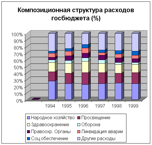 В таблице № 4 , а также на рис.2 представлены структура расходов Госбюджета и композиционная структура расходов Госбюджета.