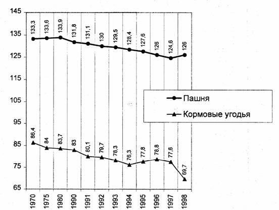 Отметим, что, возможно, роль важнейшего, как считается, фактора -невнимания государства к сельским проблемам, - в современных негативных процессах преувеличена. Как видно на рис. 6, кризис начала 70-х годов вовсе не был связан с отсутствием государственной опеки. Лишь в 1992 году мы видим явные результаты «реформы». Дальнейшие спады - в 1994 и 1998 гг. -были вызваны скорее причинами финансового порядка - окончанием действия льготных кредитов и финансовым кризисом 1998 г.