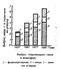 Известно, что главный источник жизни на земле — энергия Солнца. От Солнца на Землю поступает огромное количество энергии, в том числе тепловой. Годовое ее количество примерно в десять раз больше количества всей тепловой энергии, заключенной во всех разведанных запасах органического топлива планеты. Использование лишь 0,01% общего количества световой энергии, поступающей на поверхность Земли, могло бы полностью обеспечить мировые потребности в энергии. Однако количество усвояемой Землей солнечной энергии ничтожно мало. Его увеличению способствует наличие в атмосфере так называемых «парниковых» газов и прежде всего диоксида углерода, выделение которого заметно возрастает. Он свободно пропускает солнечные лучи, но задерживает отраженное тепловое излучение Земли. В атмосфере содержатся и другие газы, обладающие тем же эффектом: метан, фторхлоруглероды (фреоны), рост мирового выброса которых за 1957—1987гг.