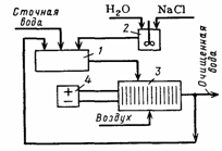 1 - усреднитель: 2 — бак для приготовления раствора хлорида натрия: 3 — электро--чизер; 4 --источник постоянного тока
