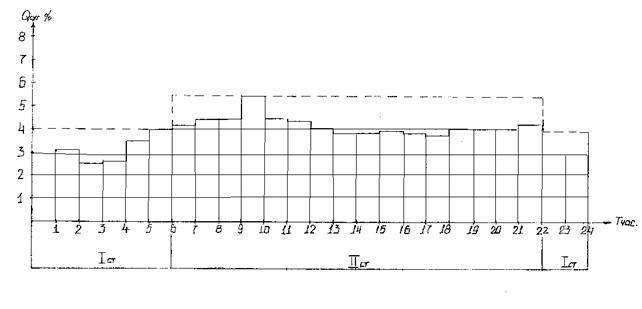 Рис. 4.2 - График суточного водопотребления Кчас= 1,35