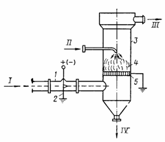 При очистке от пыли сухих газов электрофильтры могут работать в широком диапазоне температур (от 20 до 500 °С) и давлений. Их гидравлическое сопротивление невелико – 100-150 Па. Степень очистки от аэрозолей – выше 90, достигая 99,9% на многопольных электрофильтрах при d > 1 мкм. Недостаток этого метода – большие затраты средств на сооружение и содержание очистных установок и значительный расход энергии на создание электрического поля. Расход электроэнергии на электростатическую очистку – 0,1-0,5 кВт на 1000 м3 очищаемого газа.