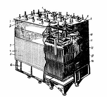 Рис. 8. Двухступенчатый электрофильтр горизонтального потока: