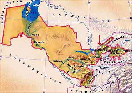 УЗБЕКИСТАН: ГЕОГРАФИЧЕСКОЕ ПОЛОЖЕНИЕ И КАРТА Узбекистан был образован в 1924 году в составе Советского Союза. Независимым был объявлен 31 августа 1991 года и назван Республикой Узбекистан. Столица - город Ташкент. В нем проживает 2,5 миллиона человек. Республика Узбекистана расположена в центральной части Средней Азии. Географическое положение Узбекистана соответствует примерно той же широте, на которой находятся такие средиземноморские страны, как Испания, Италия, Греция, Турция. Однако природные условия Узбекистана существенно отличаются от природных условий в этих субтропических странах. Это связано с тем, что территория республики значительно удалена от теплых океанов и морей, так как расположена внутри Евроазиатского материка. С юга высочайшие горы препятствуют проникновению влажных и теплых воздушных масс (муссонов) с Индийского океана, но с севера открыт путь сухим и холодным воздушным течениям. Узбекистан расположен в основном в междуречье Амударьи и Сырдарьи. Площадь Узбекистана довольно большая. Почти в 2 раза она превосходит по площади Великобританию, в 11 раз Швейцарию, в 14 раз Бельгию. Узбекистан граничит с 5 государствами. На севере и северо-западе проходит граница с Казахстаном. На юго-западе Узбекистан граничит с Туркменистаном, а на юге и юго-востоке с Афганистаном и Таджикистаном. На севере и северо-востоке проходит граница между Узбекистаном и Киргизией. Узбекистан считается одной из наиболее плотно заселенных стран. В ней проживает более 25 миллионов человек. По численности ее население в 2 раза превышает население Саудовской Аравии, в 3 раза - Швейцарии, в 10 раз - Монголии. Основную часть населения Узбекистана составляют узбеки. В республике помимо узбеков проживают русские, татары, казахи, таджики, каракалпаки, корейцы, евреи, уйгуры и представители других национальностей. |