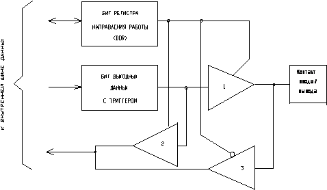 1. Буфер вывода, разрешает вывод, когда соответствующий бит в регистре DDR установлен в 1 (вывод данных).