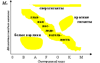 Рисунок 2: диаграмма зависимости спектрального класса от абс. звездной величины (Герцшпрунга – Рессела)