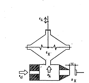 При возрастании температуры изменяется давление Р0 в замкнутой системе датчика, возникает перемещение Y1 , закрывается входное сопло усилителя.