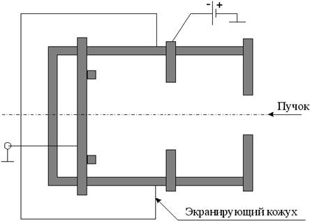 Основные достоинства рассматриваемого метода - высокая точность и возможность измерения весьма малых токов. К недостаткам цилиндра Фарадея относятся большие размеры и невозможность получить информацию о токе пучка, не нарушив его. Принципиальная схема цилиндра Фарадея показана на рис.2.
