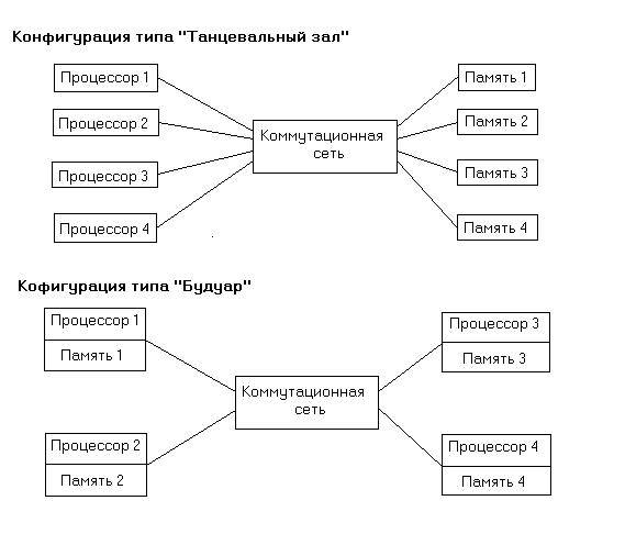 По виду взаимоотношений процессоров мультипроцессоры могут быть, кроме того, подразделены на системы с аутократическим управлением, с одной стороны, и системы с равноправными процессорами – с другой. В системах первого типа между процессорами имеют место отношения ''хозяев'' и ''подчиненных''. В системах с равноправными процессорами все они имеют одинаковые возможности доступа к общей шине.