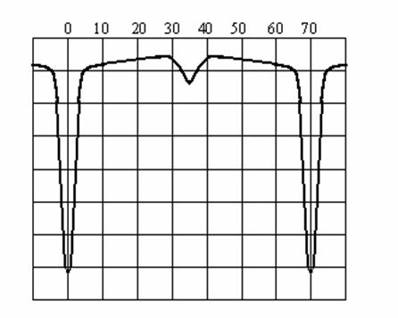 Кривая изменения блеска взезды Алголь. По горизонтали указано время в часах.