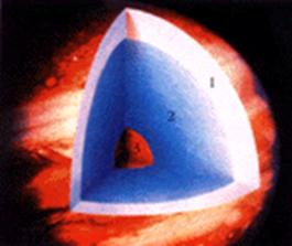Рис. 5. Разрез Юпитера 1 – атмосфера Юпитера, облачный слой; 2 – металлический водород; 3 – твердое ядро |