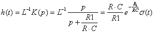 Графическое изображение импульсной характеристики апериодического звена приведено в приложении Б на рисунке Б.3