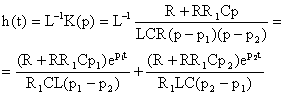 Импульсная характеристика колебательного звена определяется преобразованием Лапласа от операторной передаточной функции.