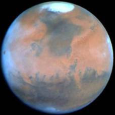 Солнечные сутки на Марсе длятся 24 ч. 39 мин. 35 с. Значительный наклон экватора к плоскости орбиты приводит к тому, что на одних участках орбиты освещаются и обогреваются Солнцем преимущественно северные широты Марса, на других - южные, т. е. происходит смена сезонов. Марсианский год длится около 686,9 дней. Смена времен года на Марсе происходит так же, как на Земле. Ярче всего сезонные изменения проявляются в полярных областях. В зимнее время полярные шапки занимают значительную площадь. Граница северной полярной шапки может удалиться от полюса на треть расстояния от экватора, а граница южной шапки преодолевает половину этого расстояния. Такая разница вызвана тем, что в северном полушарии зима наступает, когда Марс проходит через перигелий своей орбиты, а в южном - когда через афелий. Из-за этого зима в южном полушарии холоднее, чем в северном. Эллиптичность марсианской орбиты приводит к значительным различиям климата северного и южного полушарий: в средних широтах зима холоднее, а лето теплее, чем в южных, но короче, чем в северных Когда в северном полушарии Марса наступает лето, северная полярная шапка быстро уменьшается, но в это время растет другая - возле южного полюса, где наступает зима. В конце XIX - начале XX века считали, что полярные шапки Марса - это ледники и снега. По современным данным, обе полярные шапки планеты - северная и южная - состоят из твердой двуокиси углерода, т. е. сухого льда, который образуется при замерзании углекислого газа, входящего в состав марсианской атмосферы, и из водяного льда с примесью минеральной пыли.