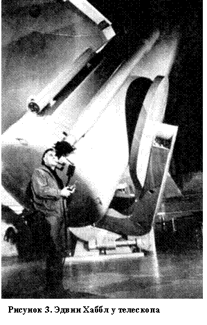 В 1929 году американский астроном Э.Хаббл опубликовал статью "Связь между расстоянием и лучевой скоростью внегалактических туманностей", в которой пришел к выводу: "Далекие галактики уходят от нас со скоростью, пропорциональной удаленности от нас. Чем дальше галактика, тем больше ее скорость" (коэффициент пропорциональности получил название постоянной Хаббла). [3]