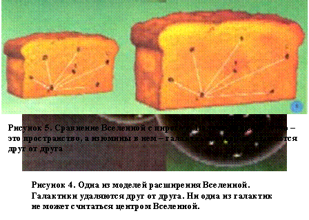 В соответствии с современными космологическими концепциями, Вселенная расширяется, но центр расширения отсутствует: из любой точки Вселенной картина расширения будет представляться той же самой, а именно, все галактики будут иметь красное смещение, пропорциональные расстоянию до них (рис.4). Само пространство как бы раздувается.