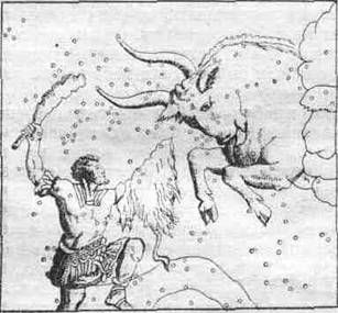 Рис. 7. Созвездия Ориона и Тельца в представлении древних греков.