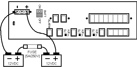 Для обеспечения бесперебойного режима работы системы в случаях аварии сетевого электропитания рекомендуется подключить блок аккумуляторных батарей на 24 В ( обычно две батареи по 12 В) с ёмкостью не более 20 А/ч. Желательно использовать необслуживаемые батареи.