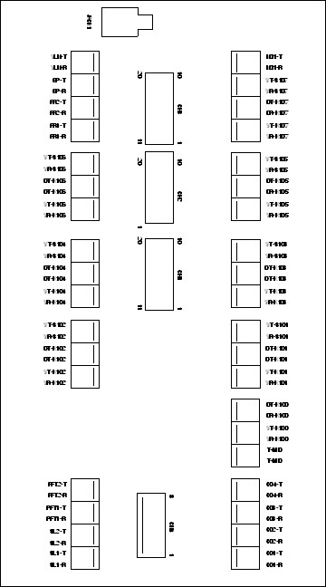 На кроссировочной плате расположены клеммы для подключения к системе внешних и внутренних линий базовой емкости, а также дополнительного оборудования. Два реле, размещенные на плате MDF, предназначены для аварийного переключения двух внешних линий на стандартные аппараты, присоединенные к портам “SL1”, ”SL2”. Плата содержит: