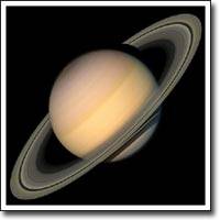 Шестая большая планета Солнечной системы. Расположен примерно вдвое дальше от Солнца, чем Юпитер, и обращается вокруг него за 29.5 года. Экваториальный радиус 60330 км, масса 95 земных, ускорение свободного падения на экваторе 1100 см/с2, сжатие 1/10, средняя плотность 0.7 г/см3. Период вращения на экваторе равен 10 часов 14 минут и увеличивается к полюсам. На диске можно различить полосы, зоны и другие более тонкие образования. В атмосфере наблюдаются спектральные линии водорода Н2, метана СН4, ацетилена С2Н2, этана С2Н6. Элементный состав, по- видимому, не отличается от солнечного, т.е. планета состоит на 99% из водорода и гелия. По внутреннему строению Сатурн похож на Юпитер. Эффективная температура Сатурна около 95 К. Так же, как и у Юпитера, около половины излучаемой энергии обусловлено потоком внутреннего тепла. Сатурн имеет магнитное поле (около 0.5 Э у видимой границы облаков) и радиационные пояса. Он имеет очень красивую систему колец и 22 спутника, самый большой из которых – Титан – имеет собственную атмосферу, почти полностью состоящую из азота. Уникальная по яркости по сравнению с кольцами других газовых гигантов, система колец Сатурна имеет диаметр около 250 тыс. км, однако толщина колец – всего несколько десятков метров. В настоящее время астрономы предполагают, что возраст колец – всего около ста миллионов лет.