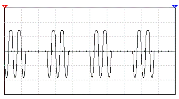 В тесте был использован прямоугольный управляющий сигнал частотой 40 КГц, амплитудой 7В, со смещением +7В и отношением длины импульса к времени повторения 30%: