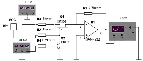 В данной курсовой работе я провел макетирование и исследование трех различных принципиальных схем аналогового электронного ключа на полевом транзисторе. Общий принцип работы схемы заключается в следующем: