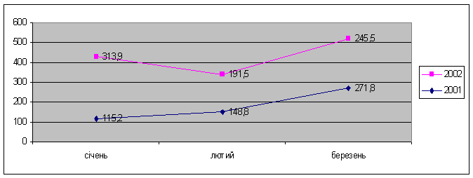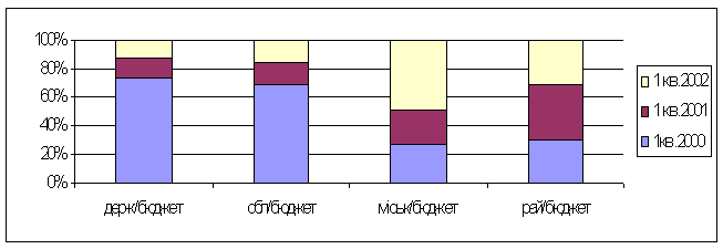 За 1 квартал 2002 года поступило 1,2 тыс. грн, что составляет 400% от утвержденного плана на квартал и 54,5% от утвержденного плана на год.